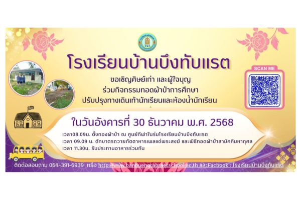 ยินดีต้อนรับเข้าสู่เว็บไซต์ โรงเรียนบ้านบึงทับแรตค่ะ...
