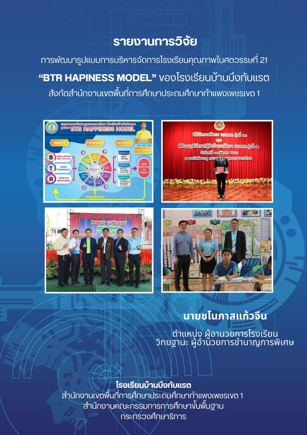 ชื่อผลงาน : การพัฒนารูปแบบการบริหารจัดการโรงเรียนคุณภาพในศตวรรษที่ 21 ของโรงเรียนบ้านบึงทับแรต “BTR HAPINESS MODEL” สำนักงานเขตพื้นที่การศึกษาประถมศึกษากำแพงเพชร เขต 1